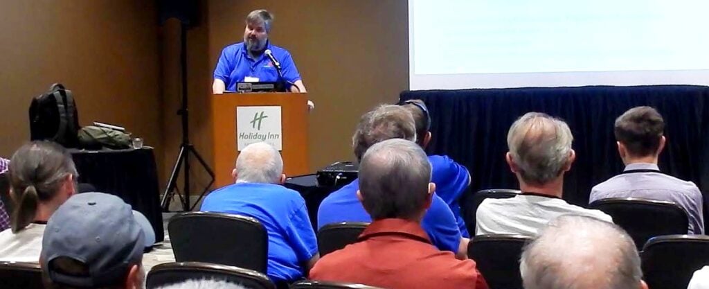 AMSAT President Drew Glasbrenner, KO4MA, addresses the 2025 Annual General Meeting in Phoenix (Credit: David Vine, WA1EAW, AMSAT Director of Public Relations)